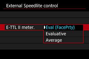 • If [Average] is set, the flash exposure will be averaged for the entire metered scene.