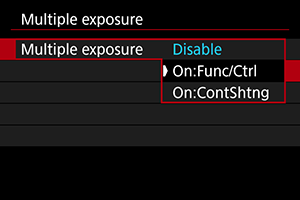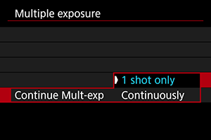 - With [Continuously], multiple-exposure shooting continues until the setting in step 2 is set to [Disable].