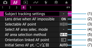Tab Menus: AF Tab (Viewfinder Shooting)