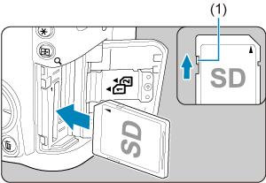 - Make sure the card's write-protect switch (1) is set upward to enable writing and erasing.