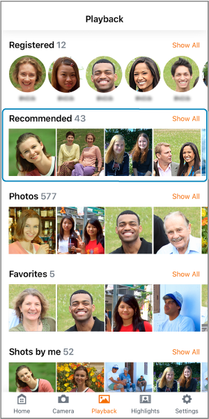 • Tap [Show All] to view a list of all recommended images.