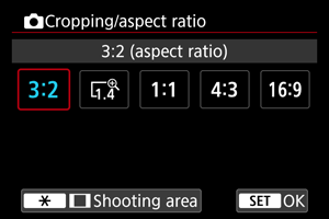 1. Select [Shooting: Cropping/aspect ratio] ().