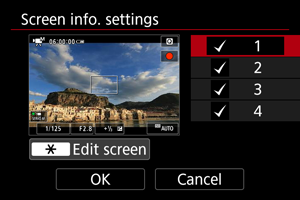• For information you prefer not to display, press Quick Control/Set to clear the checkmark [Check].
