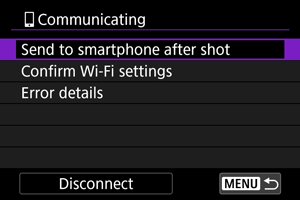 • To end the Wi-Fi connection, select [Disconnect] on the [Communicating] screen.