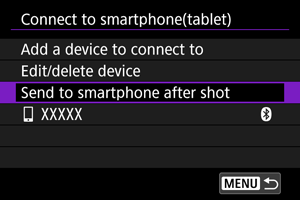 • When automatically transferring images to a smartphone during shooting, set [Send to smartphone after shot] ().