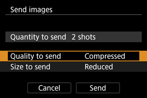 • Turn the Control dial dial to select images to send, then press Quick Control/Set.