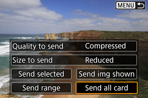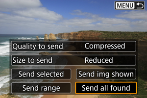 • Press Quick Control/Set with [Send img shown] selected to immediately send the image.