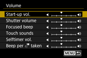 The volume of camera sounds is adjustable.