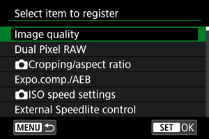 On the My Menu tab, you can register menu items and Custom Functions you often adjust.