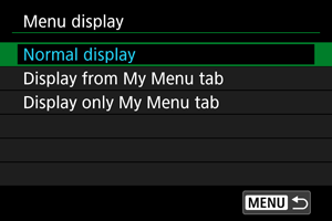 You can select [Menu display] to set the menu screen that is to appear first when you press the button.