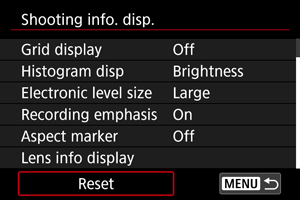 1. Select [Shooting: Shooting info. disp.] (, ).