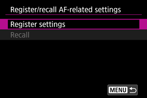 1. Select [Autofocus: Register/recall AF-related settings] ().
