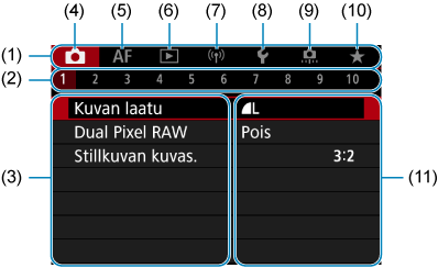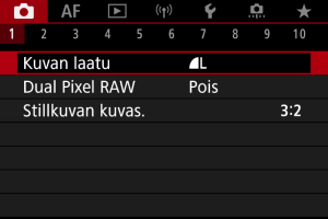 Joitakin välilehtiä ja valikkovaihtoehtoja ei näytetä peruskuvaustiloissa.