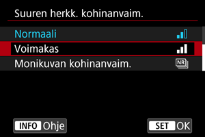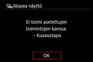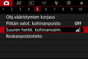 Himmennettyjä valikkokohtia ei voi määrittää. Valikkokohta näkyy himmeänä, jos jonkin toisen toiminnon asetus ohittaa sen.