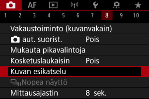 Asetuksella [Päällä] kuvat näytetään etsimen näytössä heti kuvaamisen jälkeen.