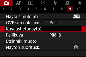 Voit mukauttaa tiedot ja tietonäytöt, jotka näytetään näytöllä tai etsimessä kuvauksen aikana.