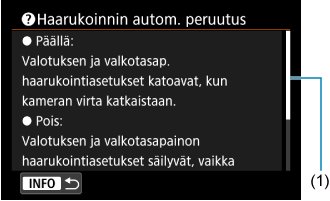 -painiketta. Poistu ohjenäytöstä painamalla sitä uudelleen. Kun vierityspalkki (1) näkyy oikealla, voit vierittää näyttöä kääntämällä