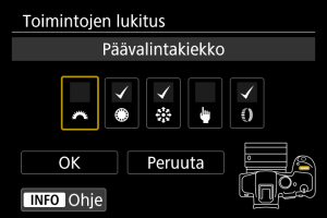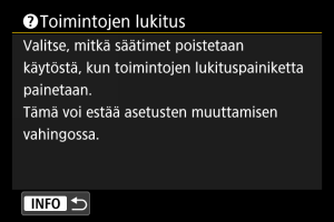 Kun näytössä näkyy [ Ohje], voit näyttää toiminnon kuvauksen painamalla