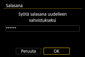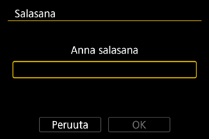 Voit muuttaa salasanan, joka annetaan, kun virtakytkin on asennossa tai kun kamera jatkaa toimintaa automaattisen virrankatkaisun jälkeen.