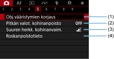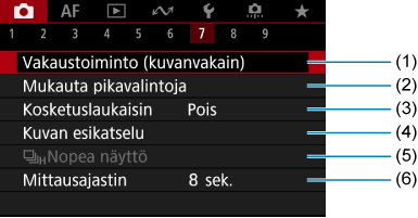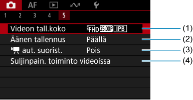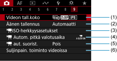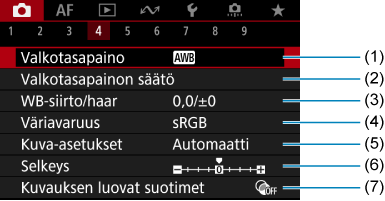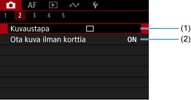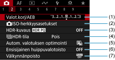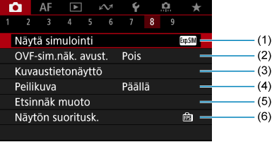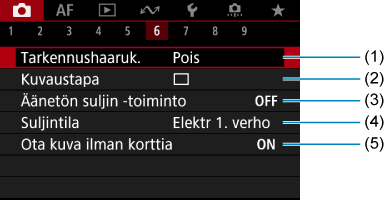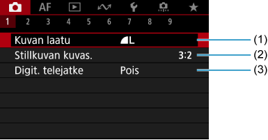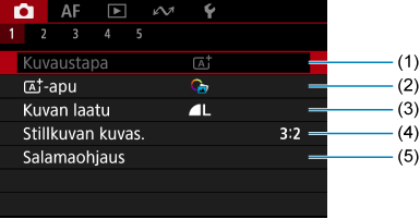 Peruskuvaustiloissa näytetään seuraavat näytöt.