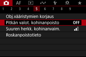 Kun kuvan valotusaika on vähintään 1 sekunti, kohinanpoisto otetaan käyttöön automaattisesti, jos kuvassa on pitkästä valotusajasta johtuvaa kohinaa. Tämä asetus tehoaa useimmissa tapauksissa.