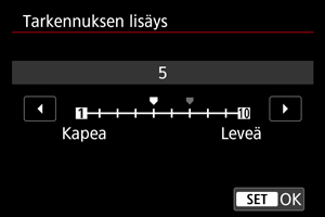 Määritä, kuinka paljon tarkennusta siirretään. Tätä määrää säädetään automaattisesti kuvaushetken aukkoarvoon sopivaksi.