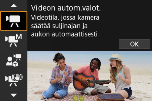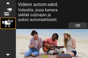 Oletusarvoisesti käytetään [Videon autom.valot.] ‑tallennusta.