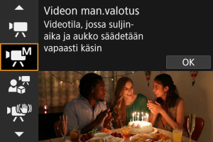 ] näkyy, kun [Videon man.valotus] on rekisteröity.