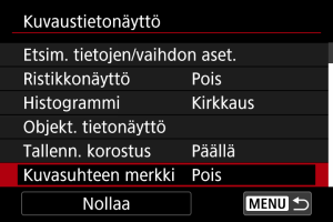 - Merkkejä ei näytetä videotoiston aikana (kuvasuhteen merkkitietoja ei lisätä tallennettuihin videoihin).