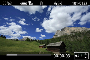 - Voit siirtyä taakse- tai eteenpäin edellisen tai seuraavan leikkeen alkuun videokoosteen toiston aikana painamalla painikkeita