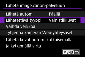 Voit valita lähetettävien kuvien tyypin.