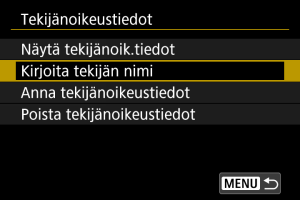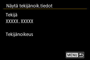 Kun valitset [Näytä tekijänoik.tiedot] vaiheessa 2, voit tarkistaa antamasi [Tekijä]- ja [Tekijänoikeus]-tiedot.