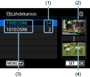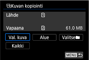 - Kun käytetään toimintoa [Val. kuva], useassa kansiossa olevia kuvia ei voi kopioida kerralla. Valitse kopioitavat kuvat yhdestä kansiosta kerrallaan.