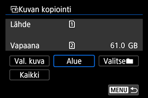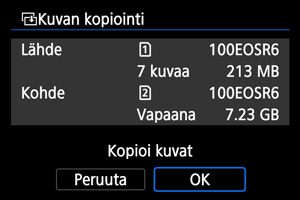 - Kuvat kopioidaan kortilta, joka on valittu kohdassa [