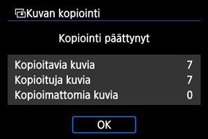 - Tulokset näytetään, kun kopiointi on valmis. Palaa vaiheen 2 näyttöön valitsemalla [OK].