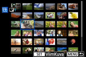 Voit kopioida kaikki määritetyt kuvat kerralla valitsemalla alueen ensimmäisen ja viimeisen kuvan, kun katsot kuvia luettelokuvanäytössä.
