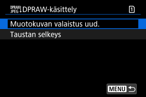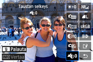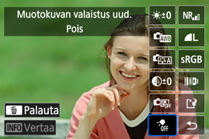 - Voit vaihtaa näyttöjen [Muut. jälkeen] ja [Kuvausasetukset] välillä painamalla [