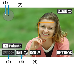 (5) Kun kuvassa on useita henkilöitä, voit valita säädettävät kasvot painamalla