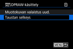 Kun käytät kameraa RAW-kuvien käsittelyyn () ja Dual Pixel RAW ‑toiminto oli käytössä kuvia otettaessa (), kaksinkertaisia pikselitietoja ja tarkkoja kasvotietoja voidaan käyttää kuvan korjaukseen.