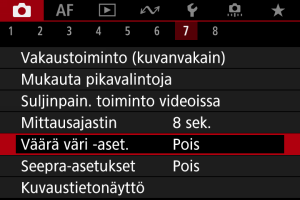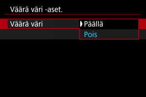 Seuraavat ominaisuudet eivät ole käytettävissä, kun kamera on asetettu käyttämään väärävärejä.