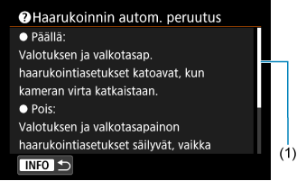 -painiketta. Poistu ohjenäytöstä painamalla sitä uudelleen. Kun vierityspalkki (1) näkyy oikealla, voit vierittää näyttöä kääntämällä