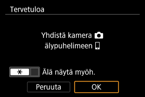 Yhdistämisohjeet älypuhelimeen tulevat näkyviin, jos valitset [OK], kun määritysnäyttö tulee näkyviin ().