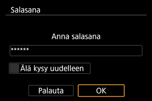 tai kun kamera jatkaa toimintaa automaattisen virrankatkaisun jälkeen. Anna määrittämäsi salasana.