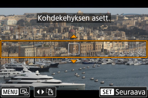 ]-valintaa voit myös vaihtaa pysty- ja vaakasuuntaisen kohteen kehyksen asettelun välillä. Kohteen kehyksen asettelun voi myös vaihtaa vaakasuunnasta painikkeilla