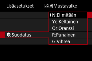 | N:Ei mitään | Normaali mustavalkokuva, jossa ei ole suodatusta. |