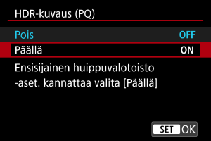 : HDR-kuvaus (PQ)] ‑asetus on [Päällä].