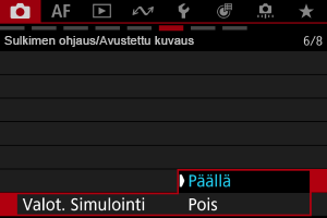 Valotuksen simulointia käytettäessä kuvan kirkkaus ja terävyysalue vastaavat paremmin kuvien todellista kirkkautta (valotus).