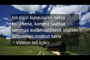 Opas varoittaa, että kamera saattaa kuumentua sisäisesti, jos videoita kuvataan nykyisillä asetuksilla, ja kamera saattaa sammua automaattisesti, jos jatkat kuvausta.