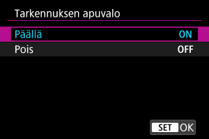 : Tarkennuksen apuvalo] ‑toiminnon arvo on [Pois].