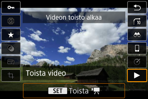 - Luettelokuvanäytössä pikkukuvan vasemmassa reunassa näkyvät reikäkuviot osoittavat, että kyseessä on video. Videoita ei voi toistaa luettelokuvanäytössä, joten siirry yhden kuvan näyttöön painamalla